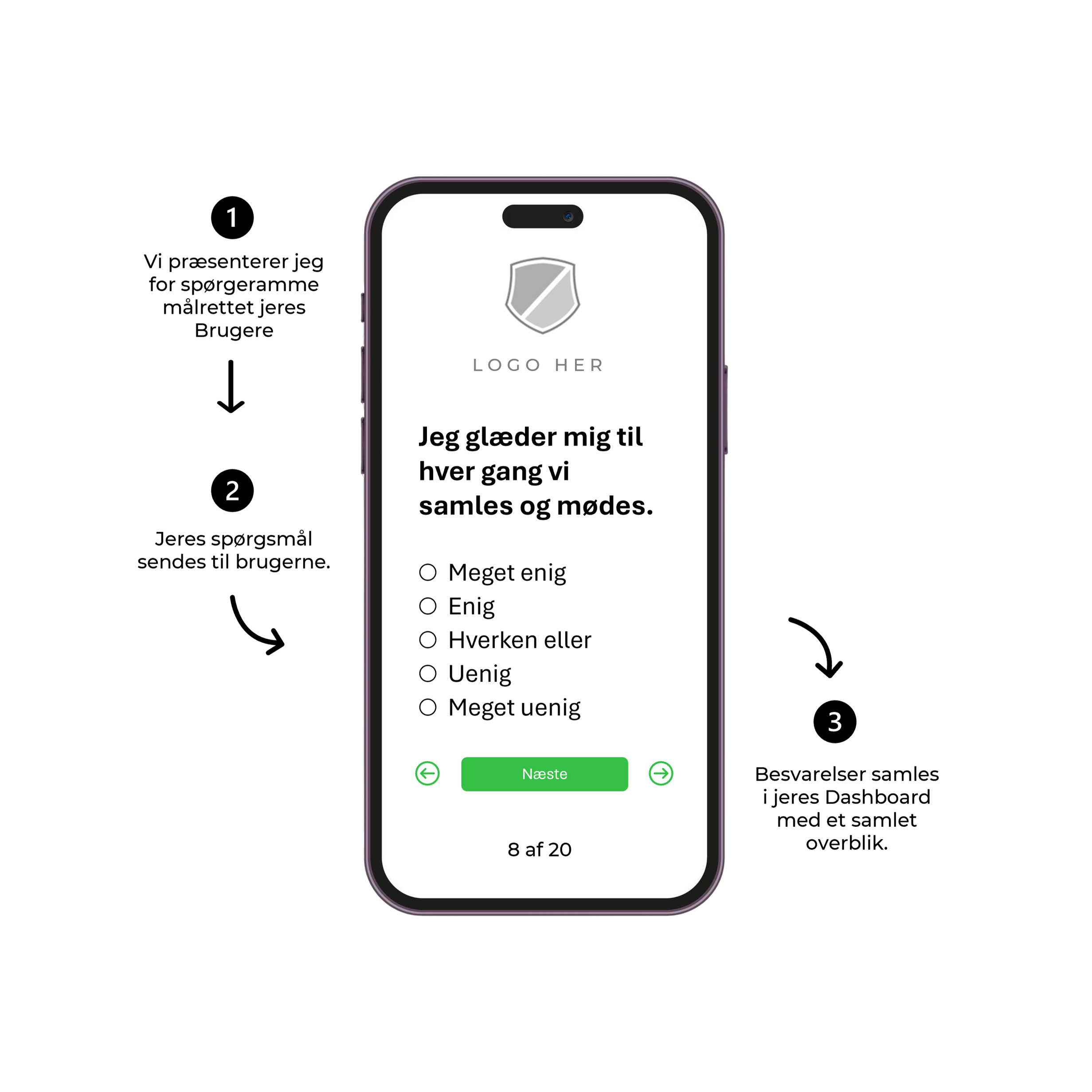 Vi indsamler besvarelserne digitalt på en enkel og tryg måde. Spørgeskemaet udsendes til de relevante målgrupper og kan besvares på mobil, tablet eller computer. Besvarelserne er anonyme, så de unge kan svare ærligt, og vi sikrer høj deltagelse og troværdige resultater.
